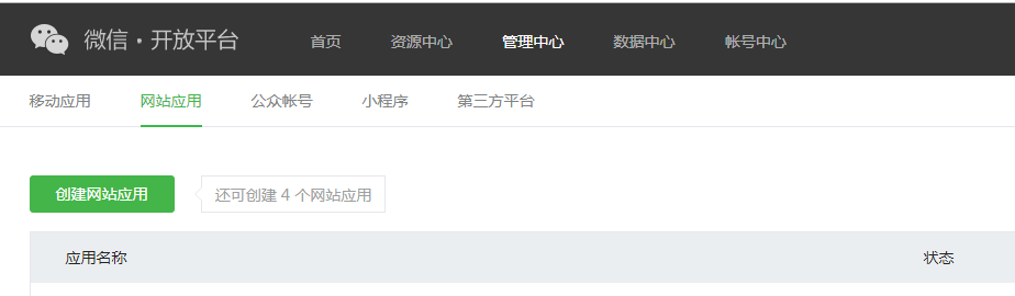 由于到对接PC网站登录,所以创建“网站应用”,操作截图如下: