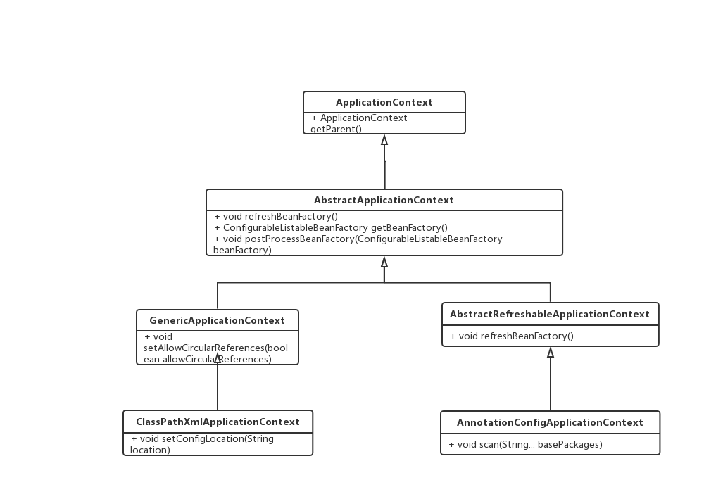ClassPathXmlApplicationContext 和 AnnotationConfigApplicationContext 的继承树如下所示。两者都继承自 AbstractApplicationContext 。