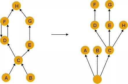 将对象树转换成 DominatorTree 能帮助我们快速的发现占用内存最大的块,也能帮我们分析对象之间的依赖关系。 DominatorTree 有以下几个定义: