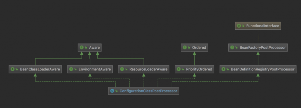 ConfigurationClassPostProcessor 实现了 BeanDefinitionRegistryPostProcessor 接口,也就拥有了在Spring容器启动时,往容器中注册 BeanDefinition 的能力。