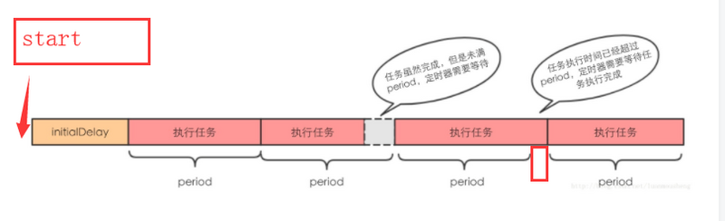 其中,scheduleAtFixedRate和scheduleWithFixedDelay的区别在于,后者定时任务的间隔时间,是从任务执行结束后,开始累加的,前者不是。