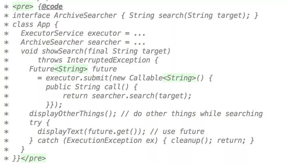 Future是Java Concurrent Util包中定义的一个接口,它是一个很有意思的发明,我们先来看看Future接口注释中的一段示例代码: