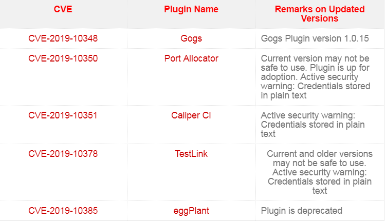 需要注意的是Port Allocator Testlink Caliper CI插件的漏洞截止目前仍然没有修复。当前eggPlant插件在使用时仍然是不安全的。