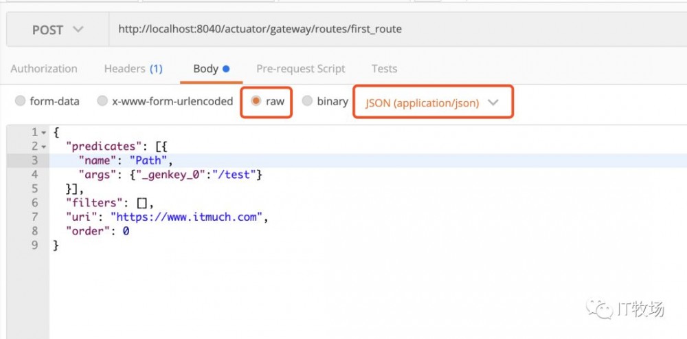 其中,要想动态添加路由配置,只需发送POST请求,消息体如下: