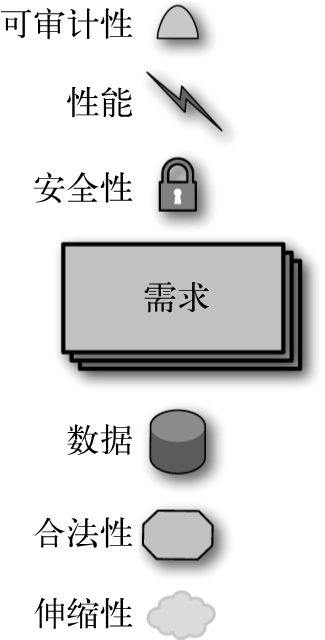 如图 1-1 所示,业务需求与其他架构关注点(由架构师定义)并存。这包括各种外部因素,这些因素可以改变构建软件系统的决策过程。表 1-1 列举了一些例子。