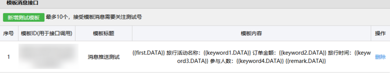 下图是在微信测试公众号申请模板