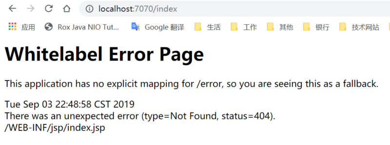 #service端口(Dev) server.port=7070 spring.mvc.view.prefix = /WEB-INF/jsp/ spring.mvc.view.suffix = .jsp application.hello = hello jsp on spring boot