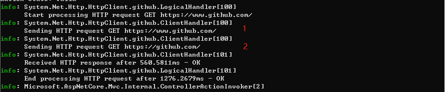 说明:从 HttpClientFactory 中获取定义好的名为 github 的 HttpClient 对象,和普通的 HttpClient 的区别是此 HttpClient 已具有定义的各种 Polly 策略,其他没任何区别;
