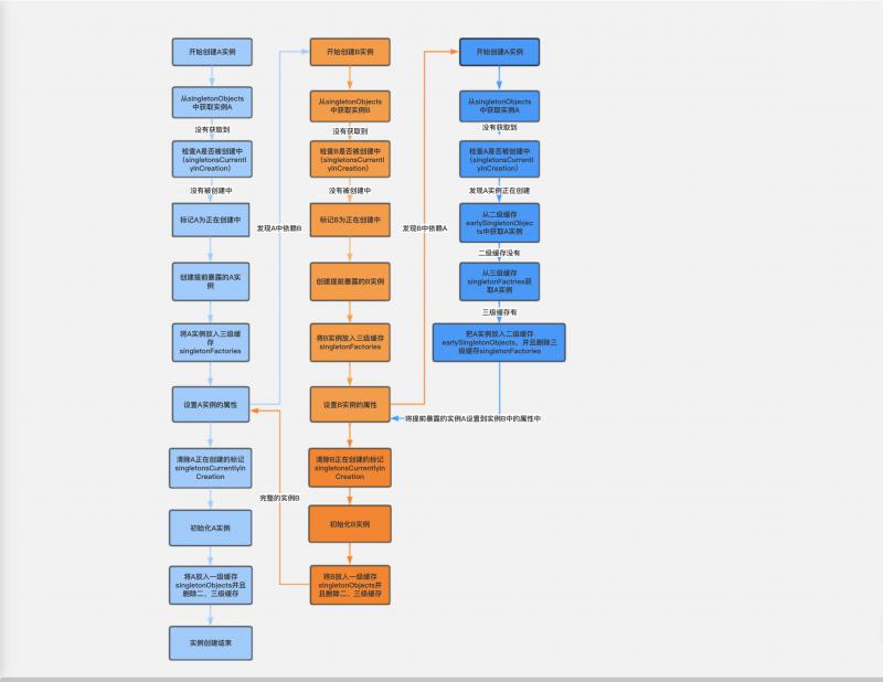 // 而B我们从上可以看到它就是个普通的Bean(并不需要创建代理对象),实例化完成之后,继续给他的属性A赋值,而此时它会去拿到A的早期引用