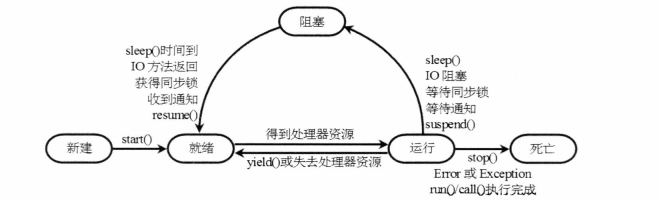 如果处于就绪状态的线程获取了CPU,开始执行run()方法的线程执行体,则该线程处于运行状态。