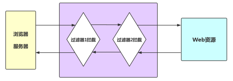 当然,过滤器既可以拦截request,也可以拦截返回的response,我们来看一张图