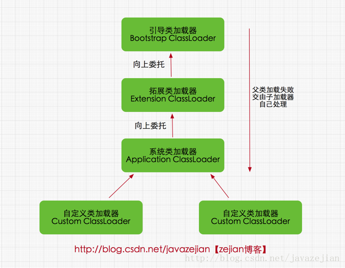 类加载器不同以及类加载器的类体系结构不同如上面的类加载器结构图