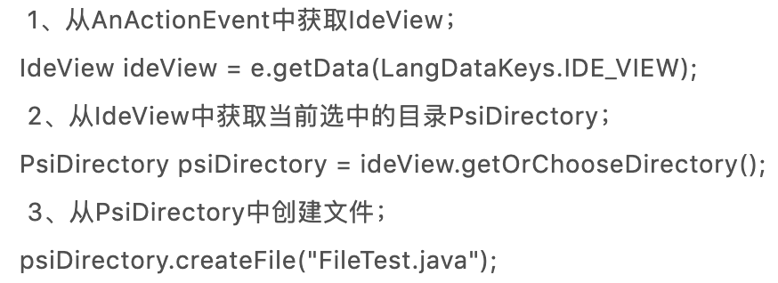 PsiJavaFile对象中包含了文件所在包的声明(PsiPackageStatement)、导入的包列表(PsiImportList)和文件中的类(PsiClass)等内容。如果要对java文件的内容进行修改,则可以操作PsiJavaFile对象。