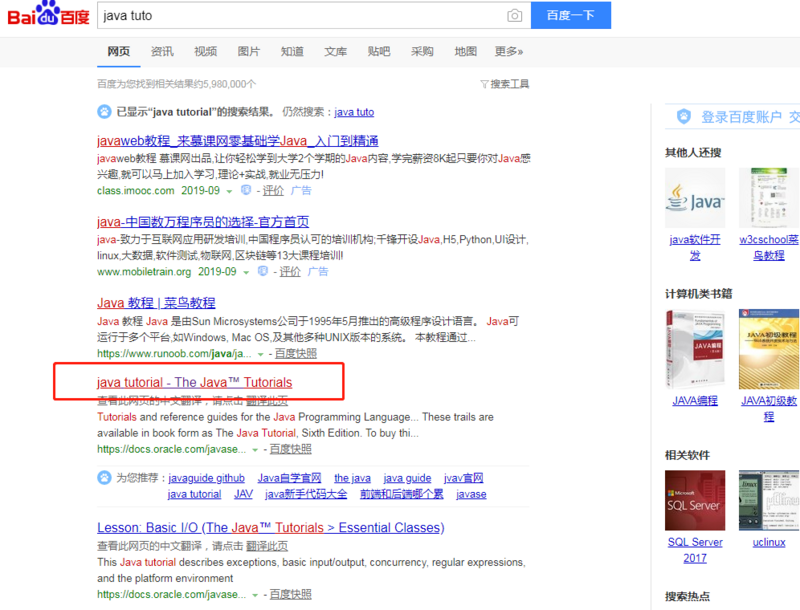 于是,我去官方写到的指导书中去寻找这个问题的答案(官方有写教程叫The Java™ Tutorial,上百度直接搜java Tutorial就可以直接搜到)