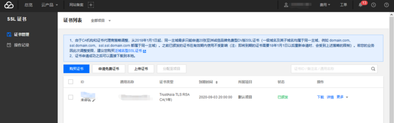 注意:申请好了如果不是在腾讯注册的域名,不会自动通过,需要手动验证的,验证方法如下: https://cloud.tencent.com/doc...