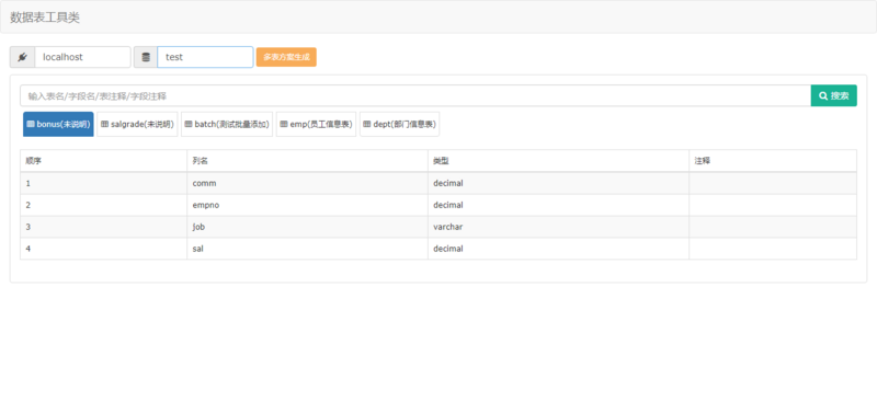 - 支持多表使用方案生成,这里选择的表就是你在主界面搜索的表,当然,你还可以进行进一步筛选