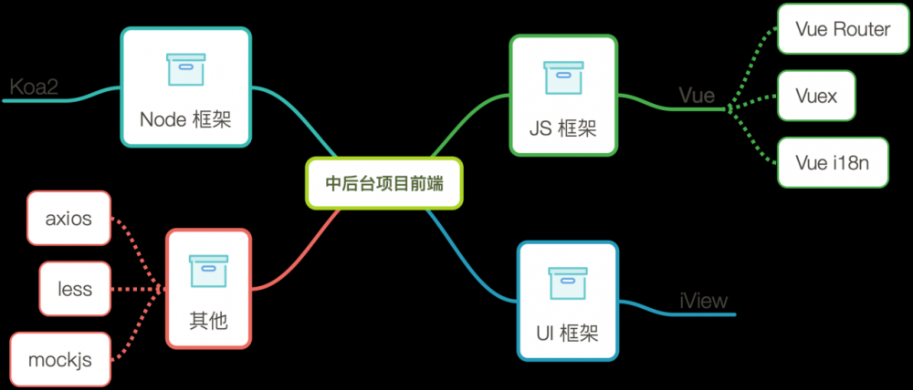 JS 框架、UI 框架及服务端框架选型都落实之后,我们还需要考虑除框架本身外的其他技术,比如我们选择了 axios 来实现接口的请求,使用 less 来预处理 css 样式,使用 mockjs 来实现接口的数据模拟等。