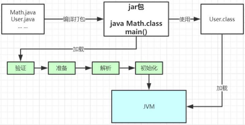 多个java文件经过编译打包生成可运行的jar包,最终由java命令运行某个主类的main函数启动程序,这里首先需要通过类加载器把主类加载到jvm。