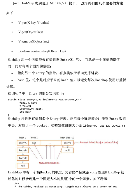 HashMap将数据存储到多个Entry链表,然后每个链表都会注册到Entry数组中去,对应于一个bucket。这初始数组的大小是16(DEFAULT_INITIAL_CAPACITY)