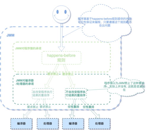 为了满足二者的强烈需求,照顾到双方的情绪,于是乎: JMM 就对程序猿说了一个善意的谎言: 「会严格遵守 Happpen-Befores 规则,不会重排序」让程序猿放心,私下却有自己的策略: