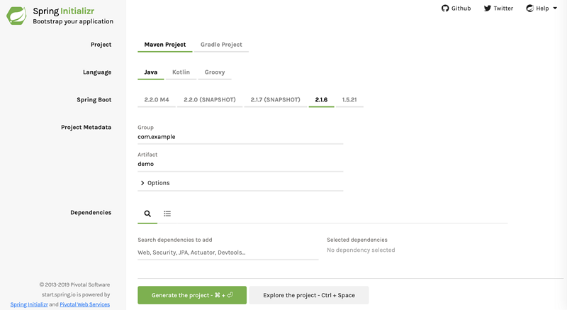 有很多种搭建方式,但是我们常用的就两种,一种是先在网站(http://start.spring.io)上生成项目压缩包,我们解压后导入编译器。另外一种就是比较直接的,直接在idea上创建(原理还是一样的)。ecplise的话可以用STS(Spring Tool Suite)