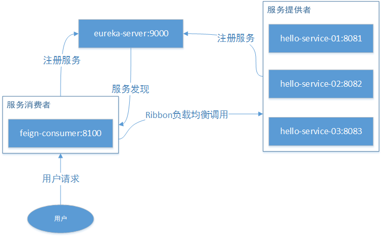 本示例主要介绍 Spring Cloud 系列中的 Eureka,使你能快速上手负载均衡、声明式服务、服务注册中心等