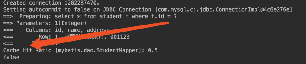 StudentBean result2 = mapper.selectUser(1);//这句执行了sql,也就是说,这句给一级缓存塞了值