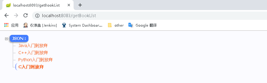 依次启动注册中心sc-eureka、提供者sc-provider、消费者sc-consumer-hystrix-ribbon,并访问http://localhost:8083/getBookList,结果显示如下: