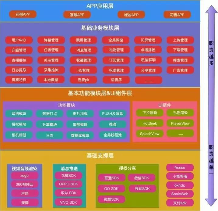 基于横向切割:针对业务层级,功能层级、基础依赖层级进行分层,方便使用者从不同的层级去集成。