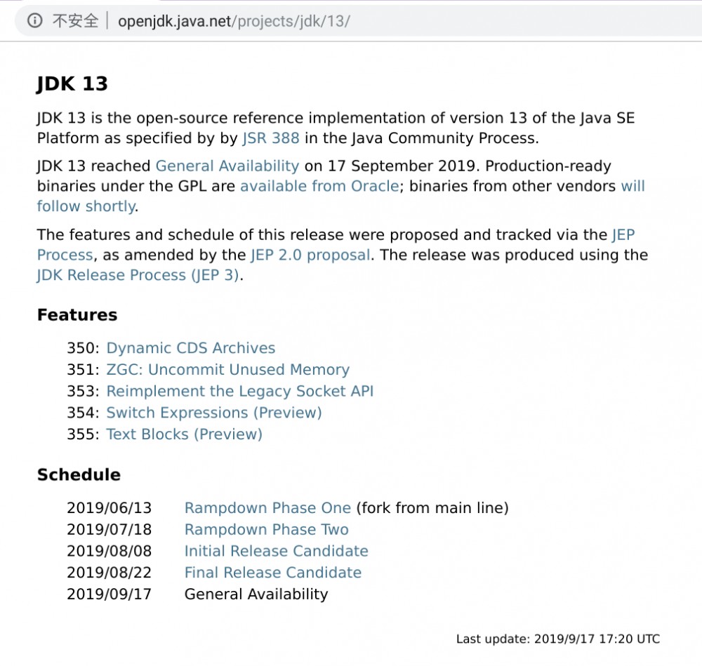 详情查看: http://openjdk.java.net/projects/jdk/13