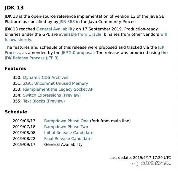最后,附上 Oracle Java SE Support Roadmap(https://www.oracle.com/technetwork/java/java-se-support-roadmap.html)可以看出 JDK 13 已经从 2019年09月开始可用了。