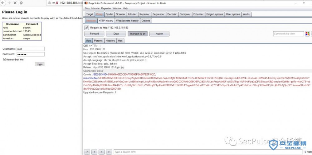 勾选记住密码并登录页面上的账号密码,成功登录后台后返回Cookie中的rememberMe值为固定的512位。