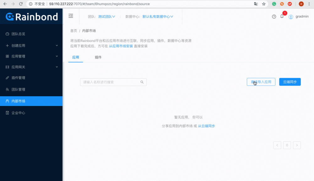 - 访问Rainbond应用管理平台,并导入离线应用包