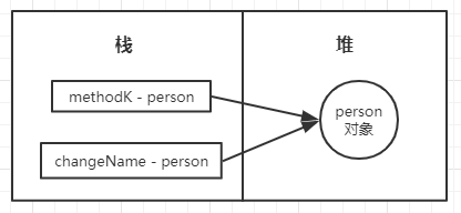 这不难解释,由于 changeName方法 中的person和 methodK方法 中的person 指向同一个对象 ,所以changeName的修改会导致name属性的变化。