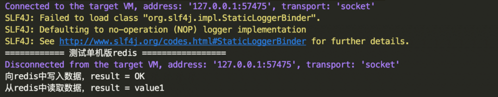 System.out.println("向redis中写入数据,result = " + writeResult);
