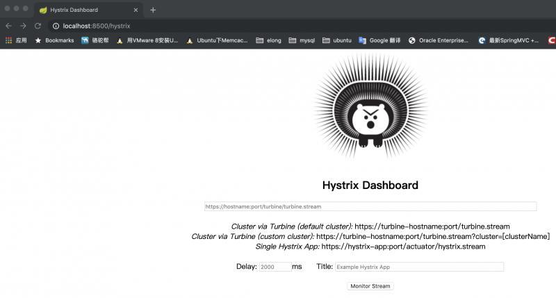 打开浏览器,输入 http://localhost :8500/hystrix显示结果如下: