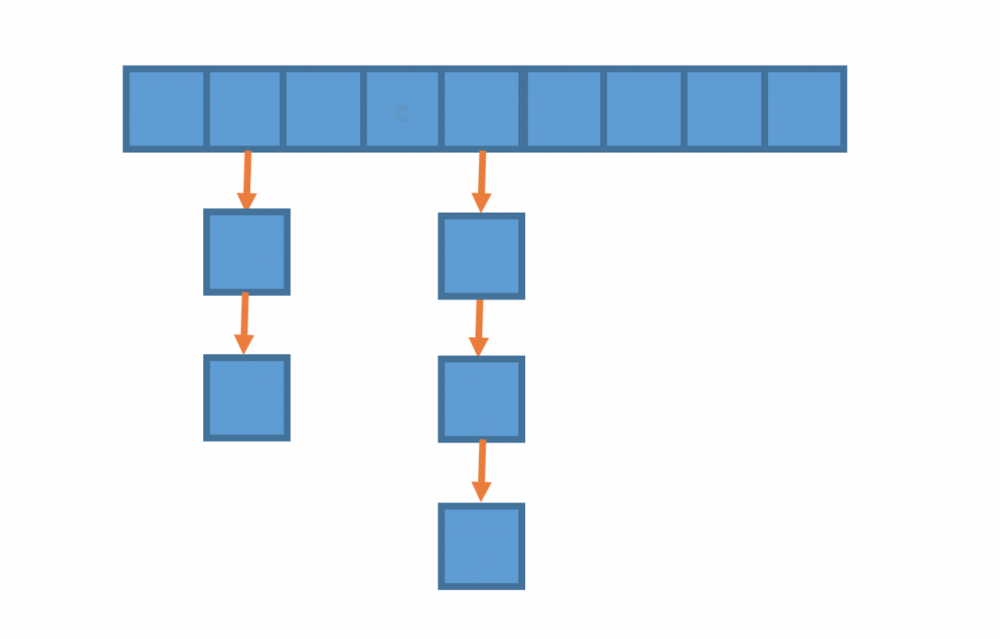 我们都知道HashMap是基于数组+链表的数据结构,可以高效的插入和查找数据,克服数组插入数据需要移位,而链表查找数据需要遍历的缺点,结构如下图。