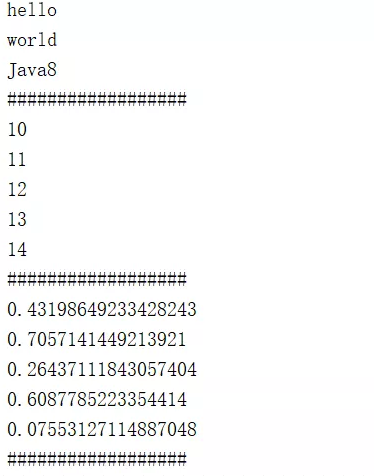 在上面的例子中,Stream.of()方法的参数是几个字符串,Stream.iterate()方法的第一个参数是初始值 10,第二个参数是在10 的基础上每次加 1 的操作,Stream.generate()的参数是用 Random 方法产生随机数。