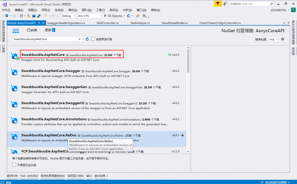 1. NuGet 中添加 Swashbuckle.AspNetCore
