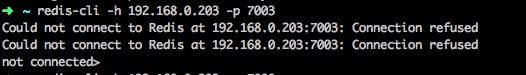 上面执行之后,报的第一个错误是连接拒绝,而我在redis集群所在的机器(203)上是可以连接成功的,但是本机连接报错