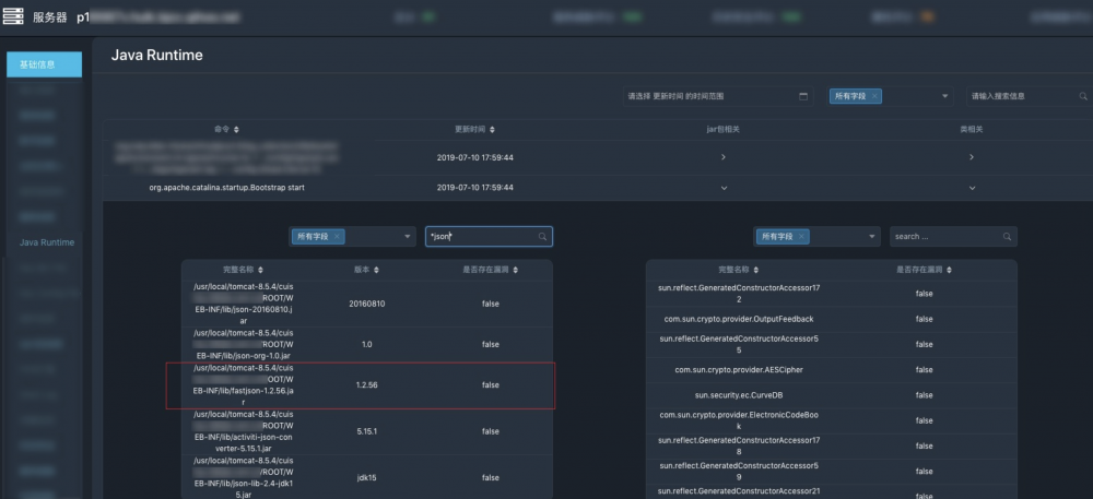 "jarFileList": ["/usr/local/tomcat/bin/bootstrap.jar", "/usr/local/tomca/webapps/webscan/WEB-INF/lib/fastjson-1.2.58.jar", "....."],