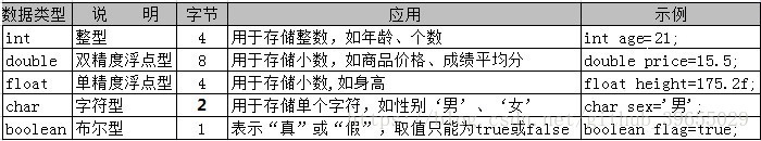 - 浮点型:float,double;
