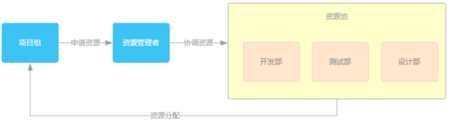 项目组向资源管理者申请资源,资源管理者向资源池协调资源,资源池分配资源给项目组,资源是资源池分配给项目组,而不是项目组自己招人。