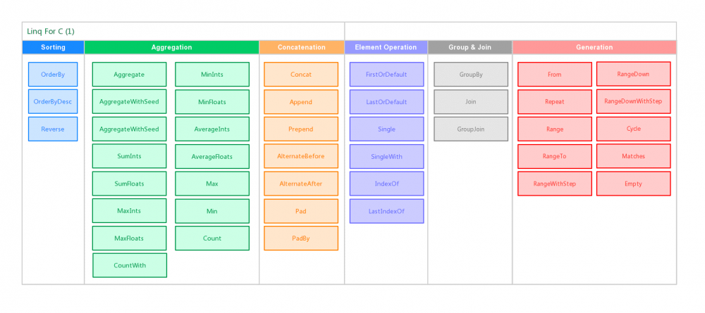 如果你想在 C 中使用隔壁 C# 的 linq 方法,那么不妨来使用这个项目!这是它的 C 语言版。实现了 linq 的大部分方法(60+)。现在它还在不断完善中,欢迎更多的小伙伴加入共同维护