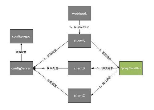 大家可以将它理解为管理和传播所有分布式项目中的消息既可,其实本质是利用了MQ的广播机制在分布式的系统中传播消息,目前常用的有Kafka和RabbitMQ。利用bus的机制可以做很多的事情,其中配置中心客户端刷新就是典型的应用场景之一,我们用一张图来描述bus在配置中心使用的机制。