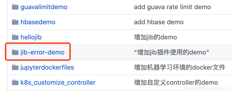 这个git项目中有多个文件夹,本章的应用在jib-error-demo文件夹下,如下图红框所示:
