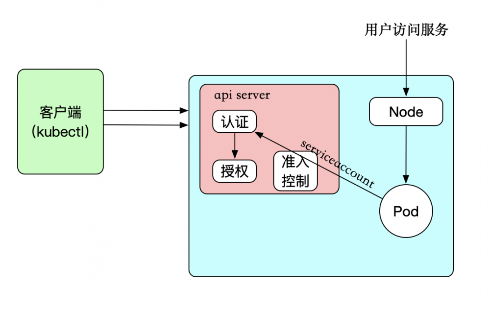 要想在pod内调用k8s的api,则必须通过kubernetes这个service,api server会首先对pod的serviceaccount进行身份验证,然后根据rolebinding确定该账户拥有的权限(role),再根据role判断该角色可以执行的操作,最终得出该账户是否有权限操作该api的结论。需要注意的是,kubernetes会给每个pod默认注入一个default的sa,但是这个sa默认是啥权限没有的(否则就不安全了)。