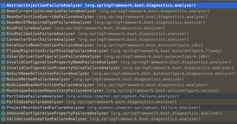 org.springframework.boot.diagnostics.FailureAnalyzer=/ org.minbox.chapter.springboot.failure.analyzer.PortInUseFailureAnalyzer,/ org.minbox.chapter.springboot.failure.analyzer.ProjectBootUnifiedFailureAnalyzer