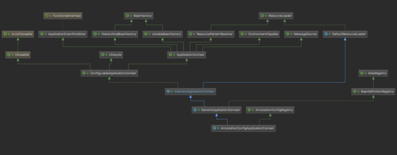 先来看一下 AnnotationConfigApplicationContext 类的UML图,留个印象。
