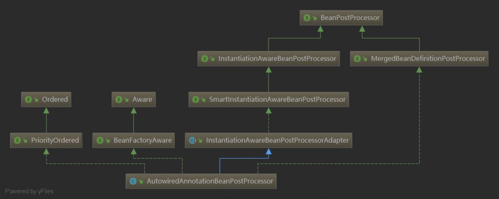 AutowiredAnnotationBeanPostProcessor 后置处理器的执行优先级 AutowiredAnnotationBeanPostProcessor 可以直接通过 BeanFactory 获取容器中的Bean 在分析自动装配前我们先来介绍一下上面的这些后置处理器。